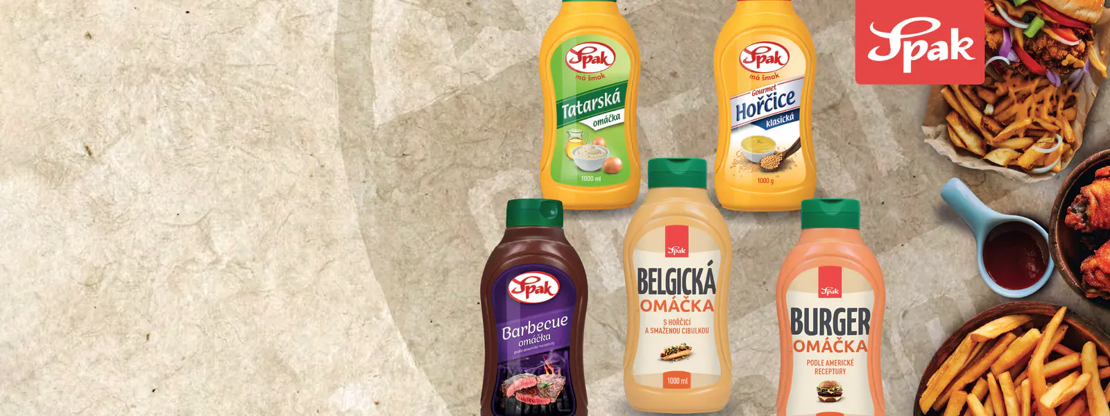 Objevte nové produkty od tradiční české značky SPAK, která je známá svou dlouholetou zkušeností a kvalitními recepturami. V nabídce najdete kečupy, hořčice, křeny, tatarské omáčky i další dipy, které skvěle doplní maso, hranolky, burgery nebo grilované speciality. 🥫🥩