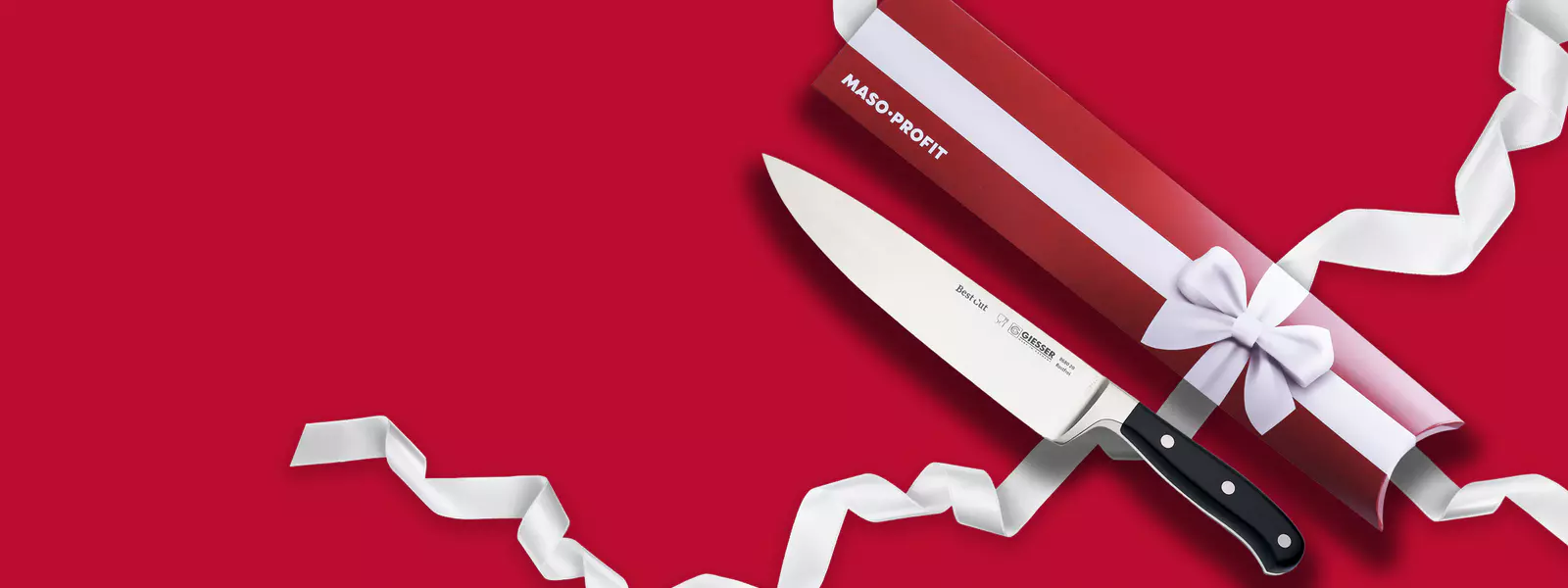 Elegantní dárkové obaly na nože značky MASO-PROFIT spojují stylový design a praktičnost, čímž zajišťují dokonalou prezentaci i ochranu nožů. Červené pouzdro s bílou mašlí působí luxusním dojmem a je ideální volbou pro ty, kteří chtějí na Vánoce darovat nůž, ale nevědí, jak nebo do čeho ho zabalit.