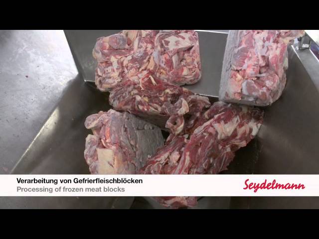 pro zpracování čerstvých i mražených surovin, téměř kompletně vyrobena z masivní nerezové oceli. Stativ stroje je kompletně uzavřen proti stříkající vodě a odvětrán zabudovaným ventilátorem. Šnek je zhotoven ze speciální nerezové oceli s tvrzenými pracovními plochami, stejně jako pouzdro šneku. Násypka s objemem 670 litrů je opatřena bezpečnostním rámem s koncovými spínači pro zastavení stroje. Hrubý lichoběžníkový závit pouzdra šneku, speciální materiál a bajonetový uzávěr matice řezací hlavy šetří čas a opotřebení při výměně řezacího složení. Stroj je konstruován s ohledem na extrémní výdrž v nejtěžších podmínkách při dlouhodobém nasazení.