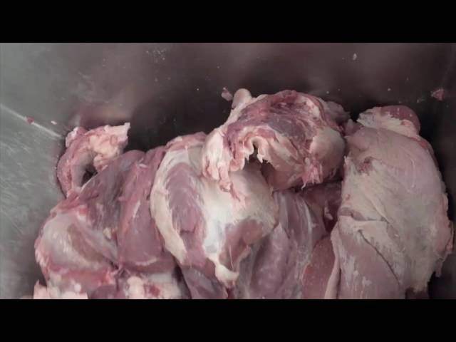 s podávacím a pracovním šnekem pro řezání čerstvého masa, případně mraženého masa do teploty - 8 °C za použití speciálního řezacího nože.